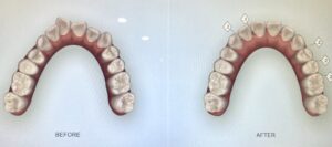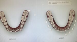 私の場合は、前歯といくつかの歯のサイドを1ミリ以下で軽く削って、隙間を作って歯を動かしていく治療法を提案してくれました。
